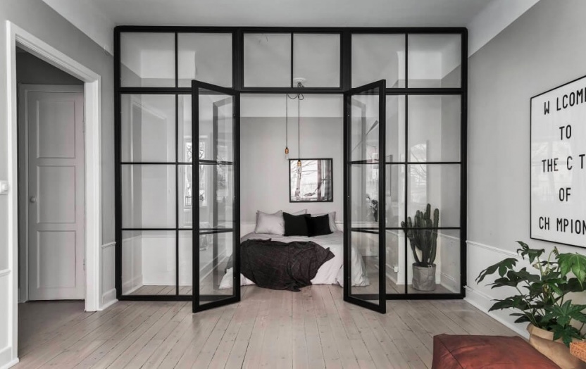 Har du behov av gränsa av ett rum, men samtidigt vill du inte förlora känslan av luft och rymd? Då är en glasvägg med dörr den perfekta lösningen, som enkelt genomförs utan stora ingrepp i byggnaden.